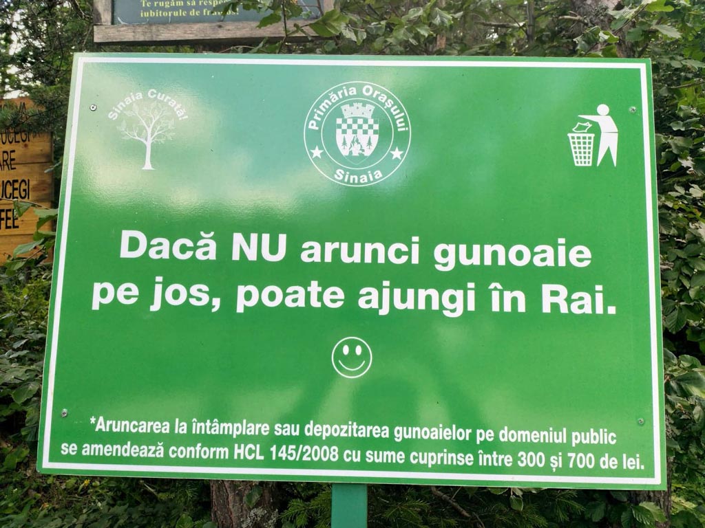 - Mizeria și mai ales fecalele de animale (sperăm că nu și de oameni…). Pe alocuri, Sinaia nu arată bine. Poate ar trebui mai multe toalete publice, mai multe coșuri de gunoi sau date mai multe amenzi. Există câteva panouri informative cu mesaje faine pentru a păstra curățenia în stațiune, dar pare că nu este de ajuns.