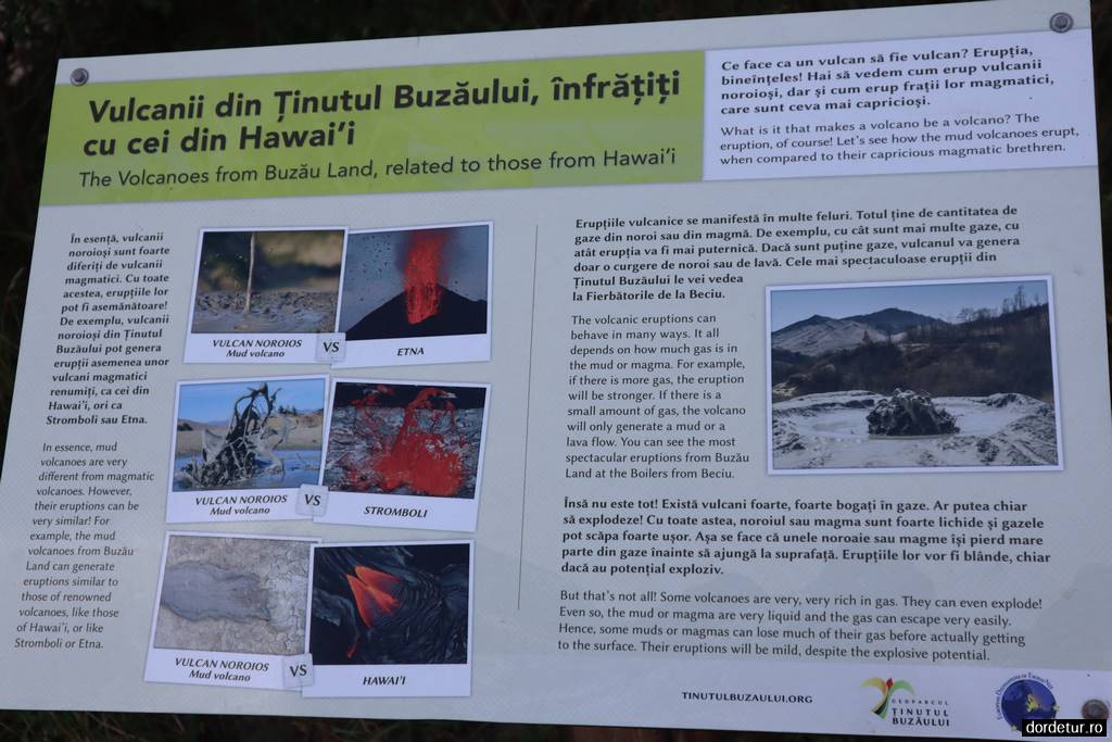 Am rămas plăcut surprinși să vedem foarte puține gunoaie. Supravegheați copiii și respectați regulile afișate înainte de intrarea în areal – tentațiile sunt mari! Amenajările de la Vulcanii Noroioși sunt absolut necesare, fiind rezervație naturală, botanică și geologică. Taxa de intrare poate ar trebui gândită ca bilet unic pentru ambele areale – gen 6 Lei (în loc de 8 Lei).
